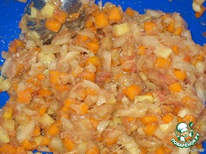Морковь нашинковать на крупной терке и соединить с луком.