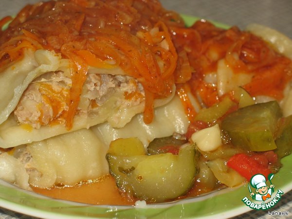 Рецепт «Ленивые манты в томатно-овощной заливке»: