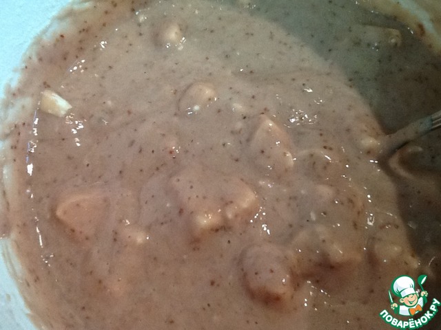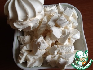 И постепенно вмешаем муку, в последнюю очередь добавим кусочки зефира.