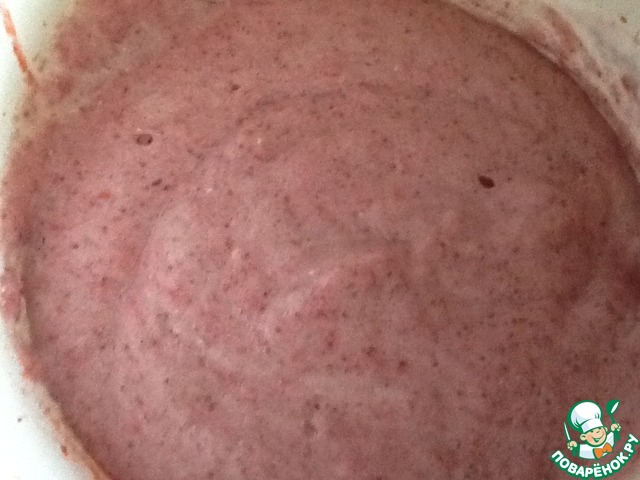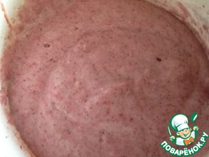 Добавить йогуртовую смесь к клубнике. Видите как за пузырилась красиво?
