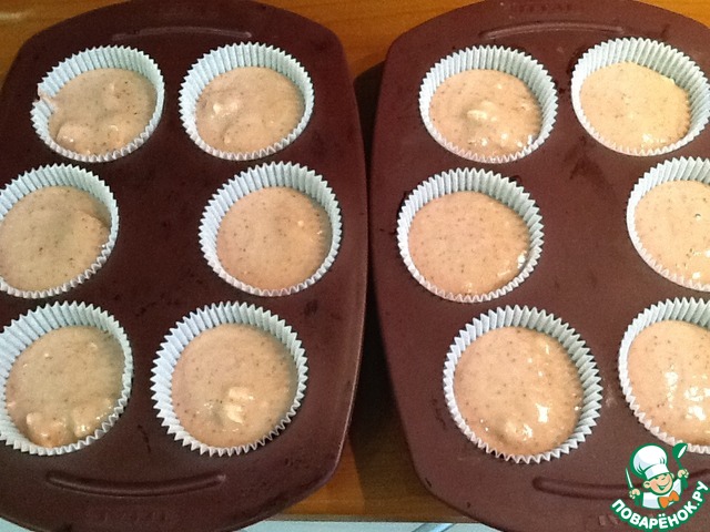 Разложим по формочкам. Сразу хочу написать, что зря я бумажные положила - кексы очень нежные, вынимались из них плохо, лучше б я сразу в силиконовые положила -вынулись бы лучше.