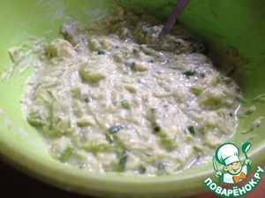 Добавить в кабачковую массу. Ввести муку и замесить тесто.