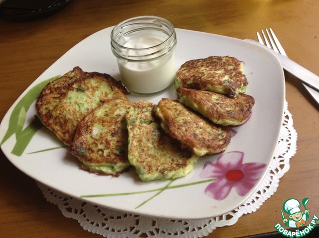 Рецепт «Кабачково-сырные оладьи с зеленью»: