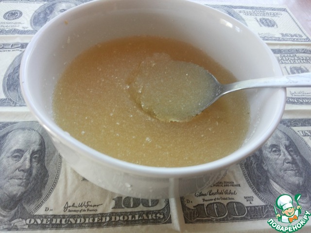 Затем лишнюю воду слить, желатин распустить на водяной бане -