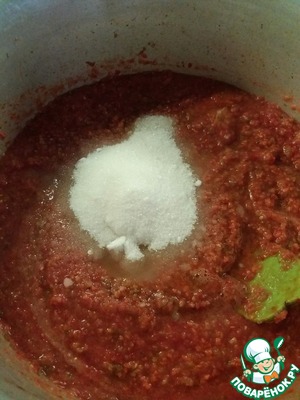 Получившуюся смесь высыпаем в большую миску, добавляем 2-3 ст. л. соли и 1 стакан сахара. Варим 1 час.