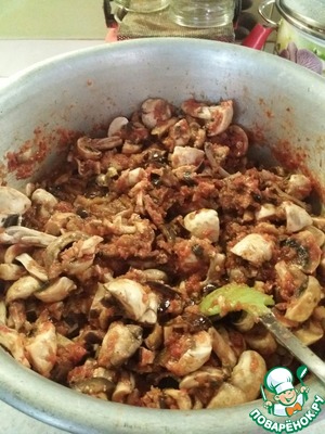После того как проварились 30 мин. баклажаны, добавляем к ним: