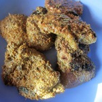Обвалять в панировочных сухарях. У меня сухари с добавлением паприки. Можно предварительно посолить и поперчить, но мне понравился натуральный вкус. Дети даже не заметили отсутствие соли. Плюс я предлагаю приготовить луковый пряный соус.