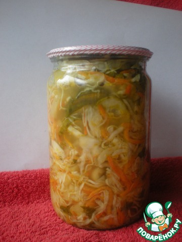 Нашла данный салат на просторах рунета, спасибо Ольге и ее бабушке за этот вкусный рецепт! Салат вкусный как и консервированый, так и через пару часов маринования.