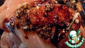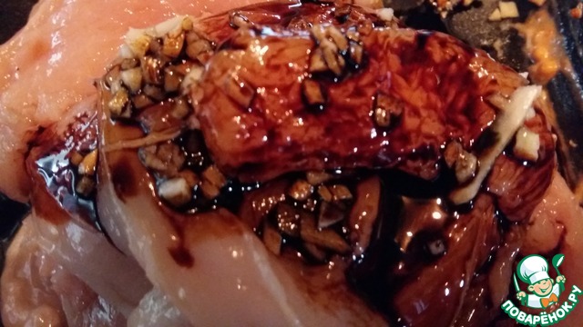 Замариновать в смеси 1 ч. л. вустерского соуса и 1 ст. л. соевого соуса.