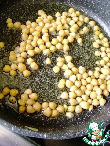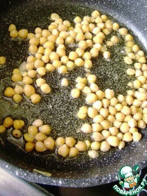 Вареный нут обжарить в раскаленном масле до подрумянивания.