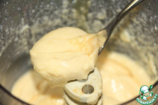 Отмерить 100 мл. масла подсолнечного (хорошего качества, рафинированного), влить в блендер, и снова включить на максимум на 10 секунд, пока масса не станет густой.
