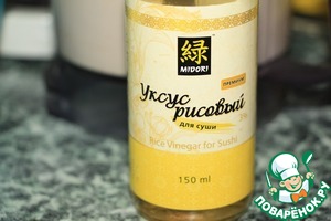 Влить уксус рисовый – 1 ч. л. и взбить пару секунд, если использовать другой уксус, то добавляем по чуть-чуть, взбиваем и пробуем.