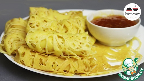 Блинчики можно подавать со сметаной, с любым вареньем или с медом. У меня сегодня обалденное варенье из ароматных абрикосок, апельсинов и лимонов.