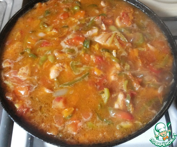 После этого как все прожарилось солим, перчем и заливаем водой и тушим на медленном огне 15-20мин
