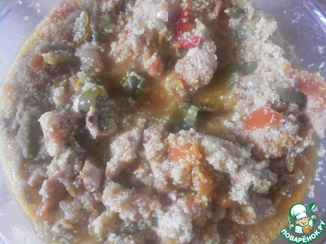 После того как протушили все в конце добавляем кус-кус и еще тушим 5-7мин постоянно помешивая