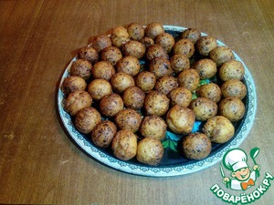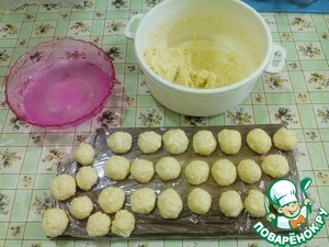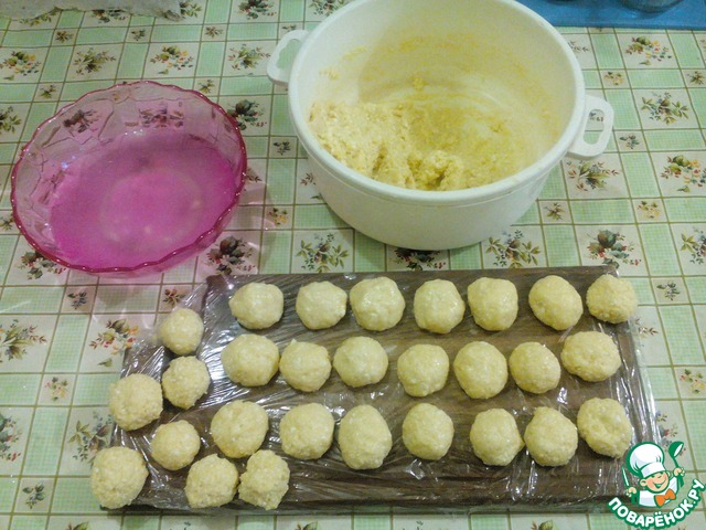 Из полученной массы делаем шарики меньше грецкого ореха. При жарки они увеличаться.