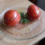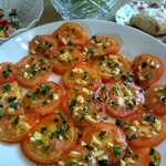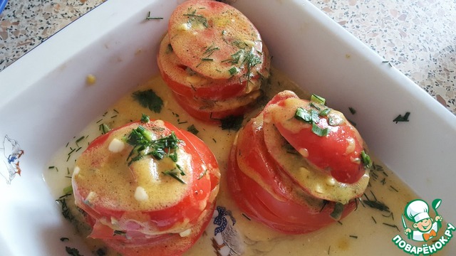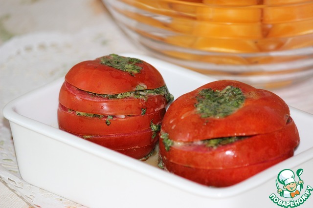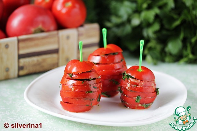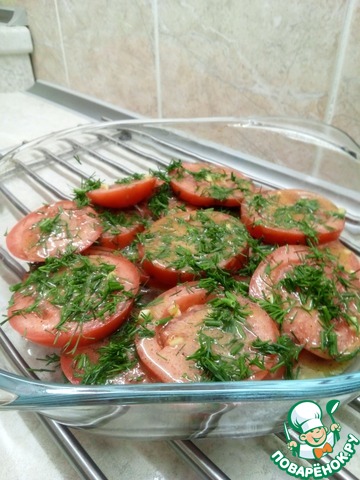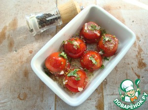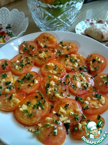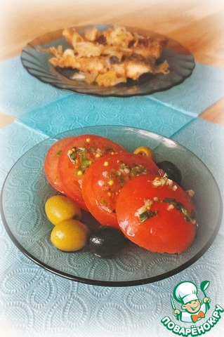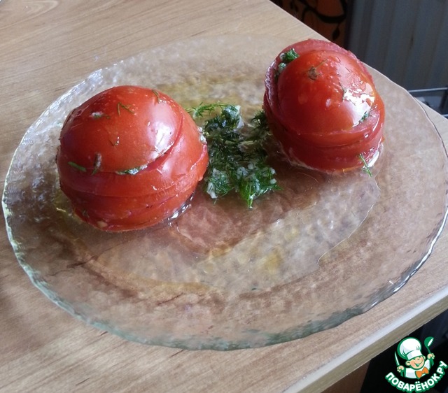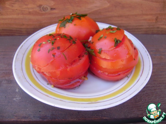 Помидоры готовы. Я их подала с домашним сыром и оливками.
