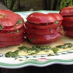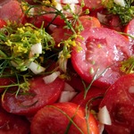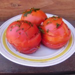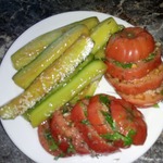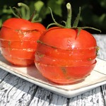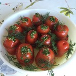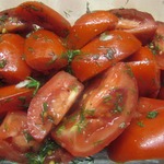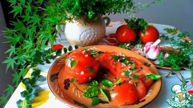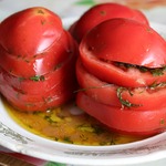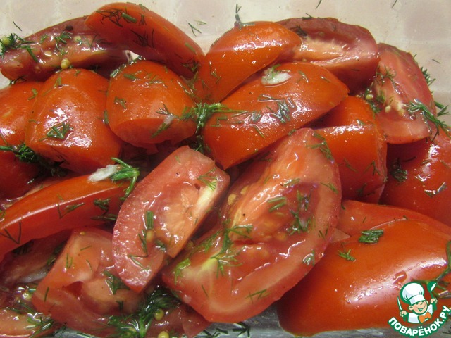Помидоры быстрые, вкус малосольных помидоров за полчаса. Говорят, что европейцы не консервируют овощи как мы, поэтому популярностью пользуются рецепты блюд быстрого приготовления. Очень освежающие, подходят как закуска, да и как гарнир. Моим очень нравится, друзья и мои знакомые частенько просят рецепт.