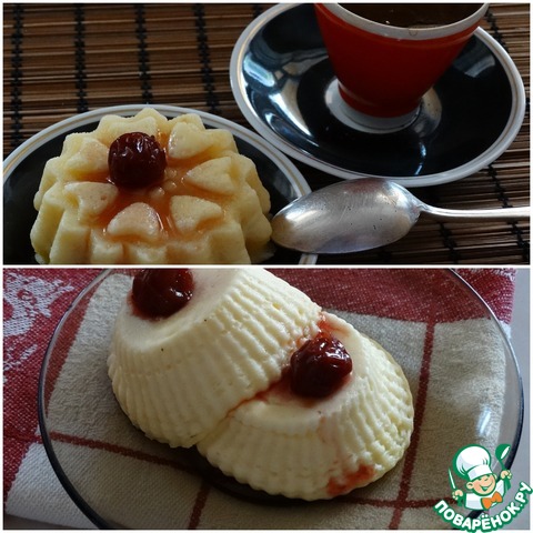 Так легко, быстро и вкусно. Блендером пробила, в силиконовые формочки (предварительно смоченные водой) разложила, три минуты в СВЧ на 800 Вт + две минуты в той же СВЧ постоять. И всё. Какой результат обещали, такой и получился.