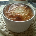 Пекла в духовке, это дольше, чем в микроволновке. У меня, кстати, не опустился совсем. Как сняла, таким и ели.