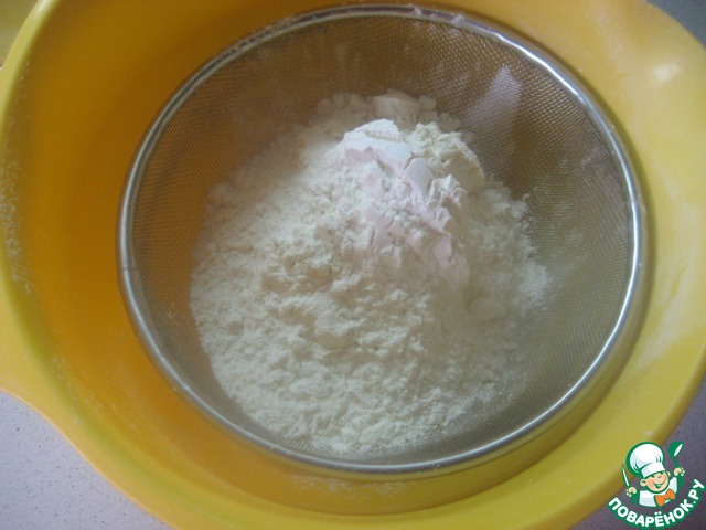 В удобную мисочку просеять муку.