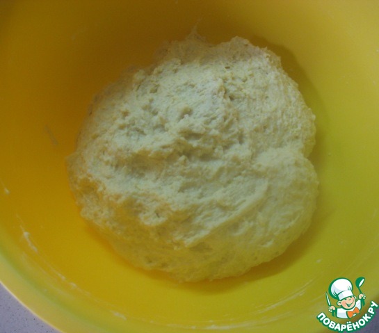 Хорошо вымешиваем мягкое, эластичное тесто. Накрываем миску с тестом салфеткой и оставляем на 2 часа для подъема.