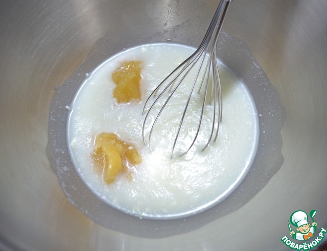 • Подогреть сыворотку до комнатной температуры, соду погасить в сыворотке.