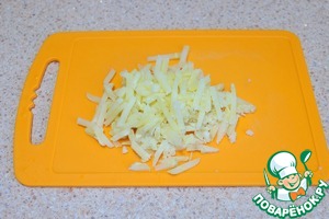 Картофель отварить в мундире, порезать тонкими брусочками.