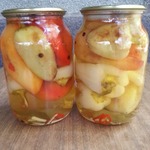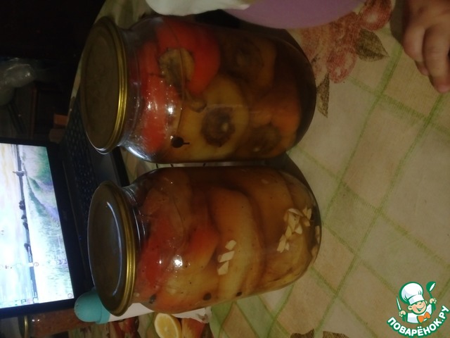 [+5]Я заменила фото, но прокомментирую, сложив новые впечатления и первые, из прежнего отзыва. В тот год у меня был довольно крупный мясистый плотный перец, вот он https://www.povarenok.ru/photo/93623/ , я хорошо жарила его под крышкой до размягчения, так, чтобы можно было достаточно убористо уложить в банку, и заливка на выходе превратилась тогда в очень вкусное такое почти желе, я его в борщ добавляла.