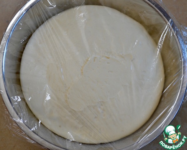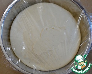 Через час тесто хорошо поднялось и заметно увеличилось в объёме.