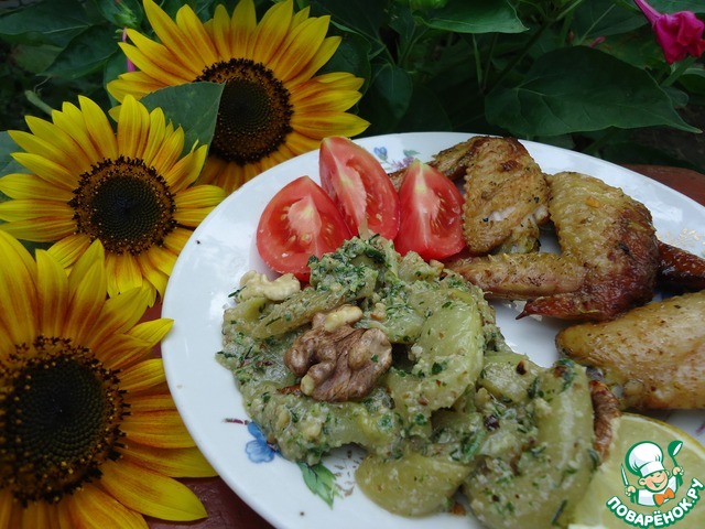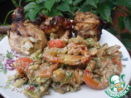 Готовлю этот салат-закуску вместе с шашлыками. Запечённый перчик в орехово-чесночной острой заправке прекрасно дополняет мясо.
