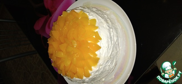 Рецепт «Бисквитный торт с персиками "Проще простого"»:
