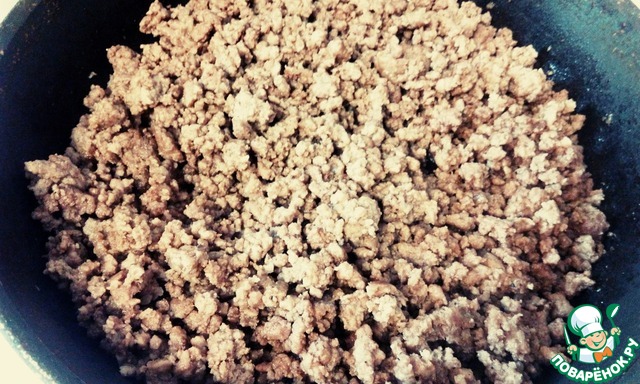 В сковороде на подсолнечном масле жарим фарш, разбивая комочки. Я его еще присолила и добавила перец по вкусу. Обжаренный фарш добавляем в кастрюлю к рису.