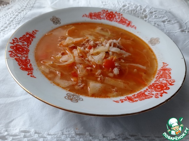 Суп получается густой, сытный. На второй день еще вкуснее. На борщ он не похож, а обжаренный фарш дает новый непривычный вкус супу. Приятного аппетита!