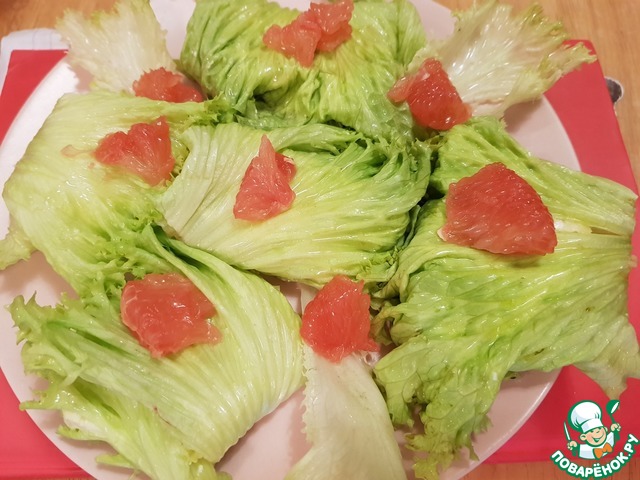 Натереть на крупной терке сыр, яйца, выдавить через чесночницу чеснок. Лук порезать. Несколько долек грейпфрута очистить от пленок, нарезать на мелкие кусочки.