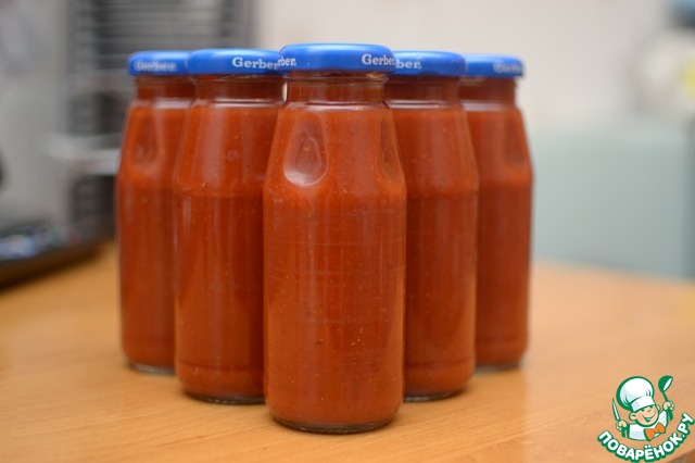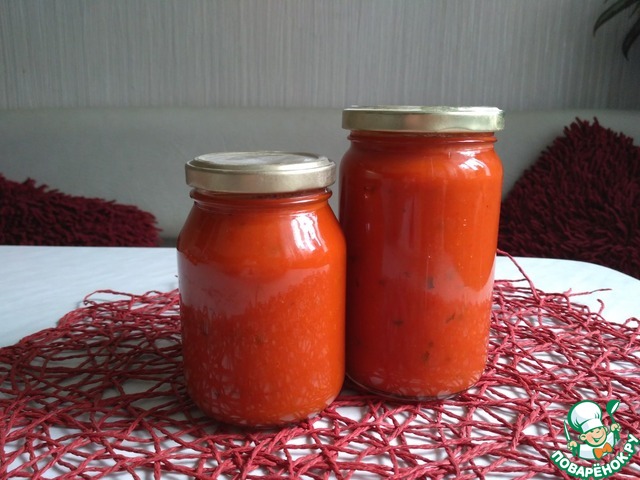 Томатный соус "Суго"-итальянский соус. Вкусный, создан для пасты. Можно заправлять и пельмени и картофель. Сегодня я опять хотела сварить на разок и получилось как всегда-пришлось закрыть пару баночек по 150 мл. Из количества продуктов выход соуса 500 мл. Получилось "напотом"! Отличная заготовка на зиму!
