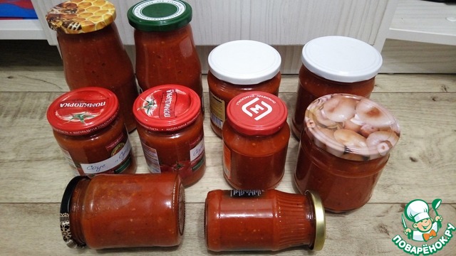[+4]Сразу готовила из 3 кг помидор. Все ингредиенты по рецепту добавила. Уксус 6% яблочный.