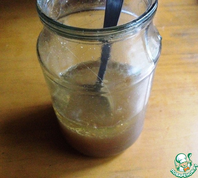 Чай заварить горячей водой. Смешать с мёдом. Добавить растительное масло, перемешать. Охладить.