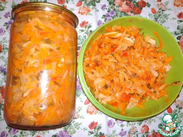 Это заготовка. Думаю, при современном темпе жизни, она будет как нельзя кстати. Очень хочется зимой горяченьких щец, но времени "кот наплакал", а достав такую баночку, Вам и потребуется всего-навсего сварить бульон и картофель. А уж как это выручит нас в пост, я и не буду Вам говорить.