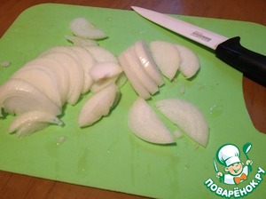 Репчатый лук очистить, нарезать полукольцами.