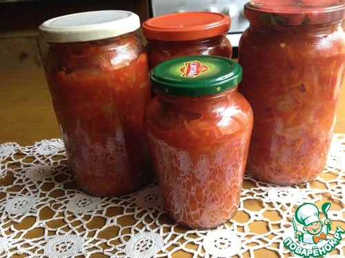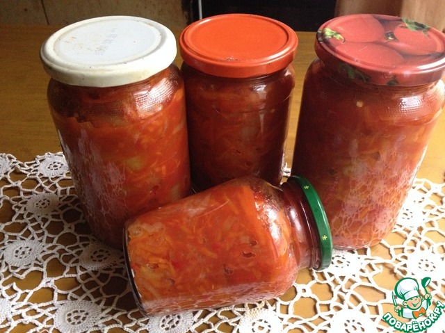 Этот салат - заготовка на зиму. Своё название он полностью оправдывает.))) Этот салат зимой просто находка: можно добавит в щи, борщ, можно использовать для тушения мяса, можно добавить в качестве соуса в пиццу. Я же люблю в качестве дополнительного гарнира или просто на хлебушек положить ложку-другую. Салат закручивается без стерилизации.