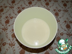 В глубокой посуде развести сгущёнку в стакане тёплой воды.