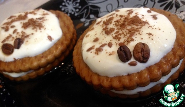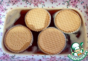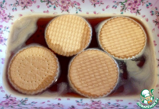 Печенье замачиваем в кофе. Лучше, чтобы кофе был сладким. А там смотрите по вкусу.