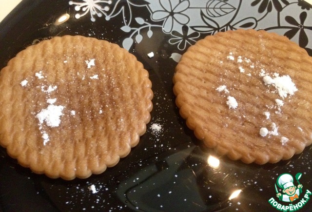 Выкладываем печенье и присыпаем пудрой. Может Вам понадобится чуть больше или меньше сахар. пудры. Это уже по вкусу.