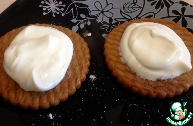 Печенье должно пропитаться. Очень долго не держите, чтобы потом лишняя жидкость не выделилась из пирожного.