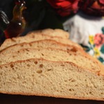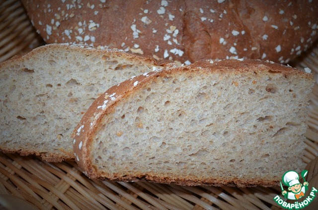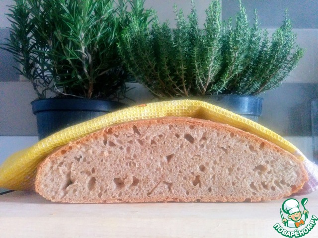 Получается высокий и большой с тонкой хрустящей корочкой и нежным пористым мякишем, очень вкусно!
