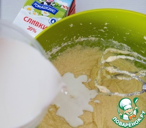 Вливаем сливки. Взбиваем. В рецепте были указаны именно 15% сливки! Я таких не нашла. : ( Обошла три магазина, везде только - 10 и 20. Решила, что лучше больше, чем меньше. :)