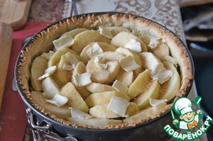 Слегка присыпать сахаром и сверху положить хлопья сливочного масла, всего уйдет примерно 1 ст. л. масла.