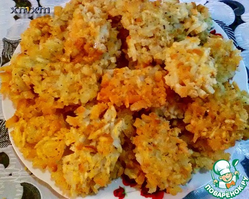 Юра, лови отчетик! Для таких, как мы, лентяев - то, что нужно! Раз-два - и завтрак! С удовольствием похрустели! Я еще лучка добавила, натертого на мелкой терке. Получились очень вкусненько! Однозначно, буду готовить еще!