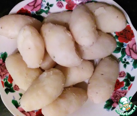 • С вечера осталось 12 вареных картофелин. Чистим их от кожуры